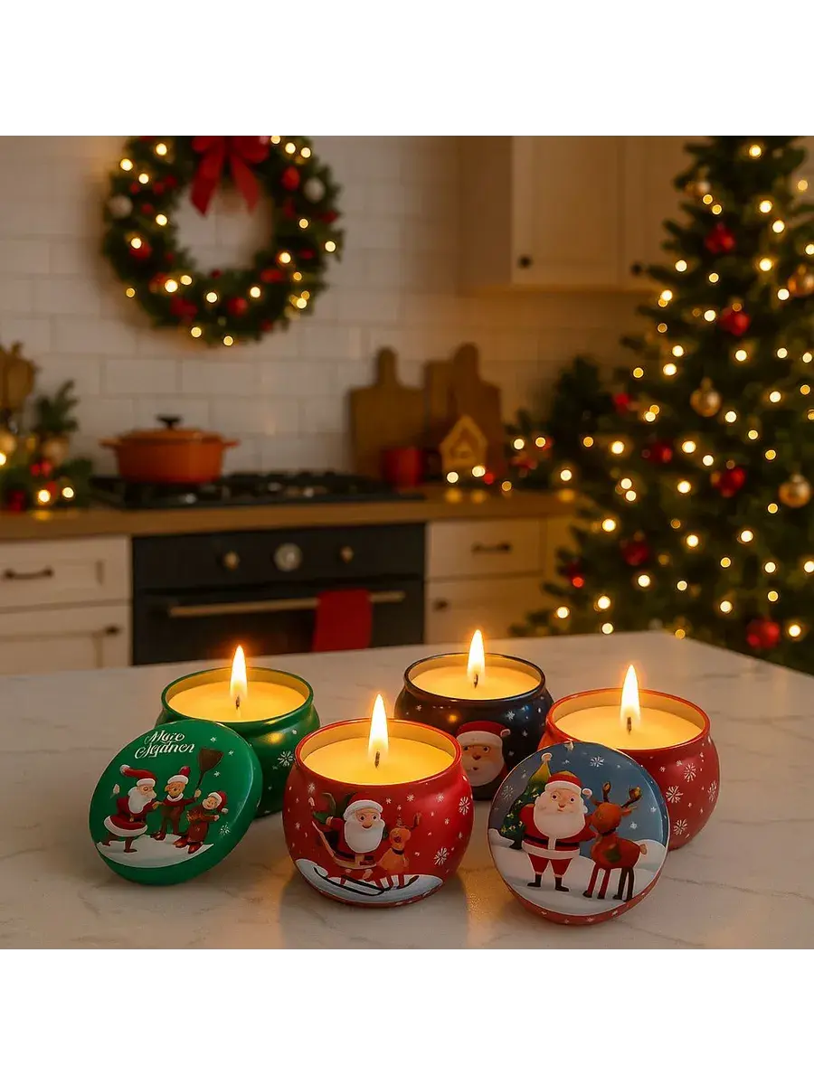 Набор новогодних свечей с ароматом жасмина - прекрасный способ создать волшебную атмосферу в вашем доме в преддверии Нового года. Четыре большие свечи с ненавязчивым, но приятным ароматом жасмина наполнят ваш дом уютом и праздничным настроением. Круглая форма свечей и их насыщенные цвета - ночной синий, зеленый, красный и бирюзовый - станут стильным украшением интерьера. Время горения каждой свечи составляет 10 часов, что позволит вам наслаждаться их ароматом и теплым светом в течение многих вечеров.