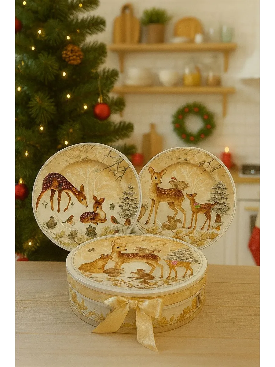 Набор из двух новогодних тарелок станет прекрасным украшением праздничного стола и оригинальным подарком для близких. Каждая тарелка выполнена из качественной керамики и украшена очаровательным рисунком с оленями, создавая атмосферу зимней сказки. Диаметр тарелок составляет 25 см, что делает их удобными для подачи как закусок, так и основных блюд. Такой набор станет отличным дополнением к новогоднему убранству и подарит праздничное настроение всем гостям.