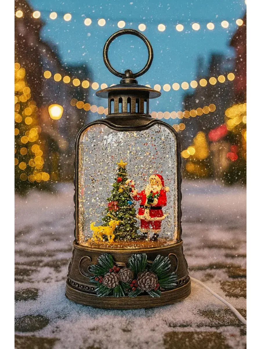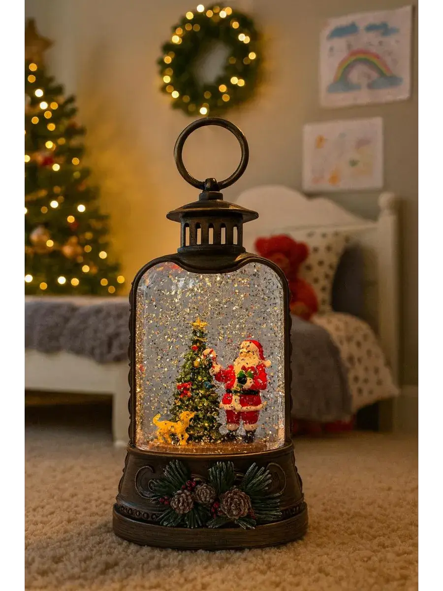 Новогодний музыкальный фонарь с изображением Деда Мороза станет настоящим украшением вашего праздника. Этот очаровательный фонарь создаст волшебную атмосферу в вашем доме благодаря теплому желтому свету и завораживающей светомузыке. Восемь праздничных мелодий и звуков наполнят ваш дом новогодним настроением. Фонарь работает в двух режимах, что позволяет вам выбрать наиболее подходящий вариант для любого случая. Его компактный размер и настольное исполнение делают его идеальным для украшения подоконников, каминов и праздничных столов.