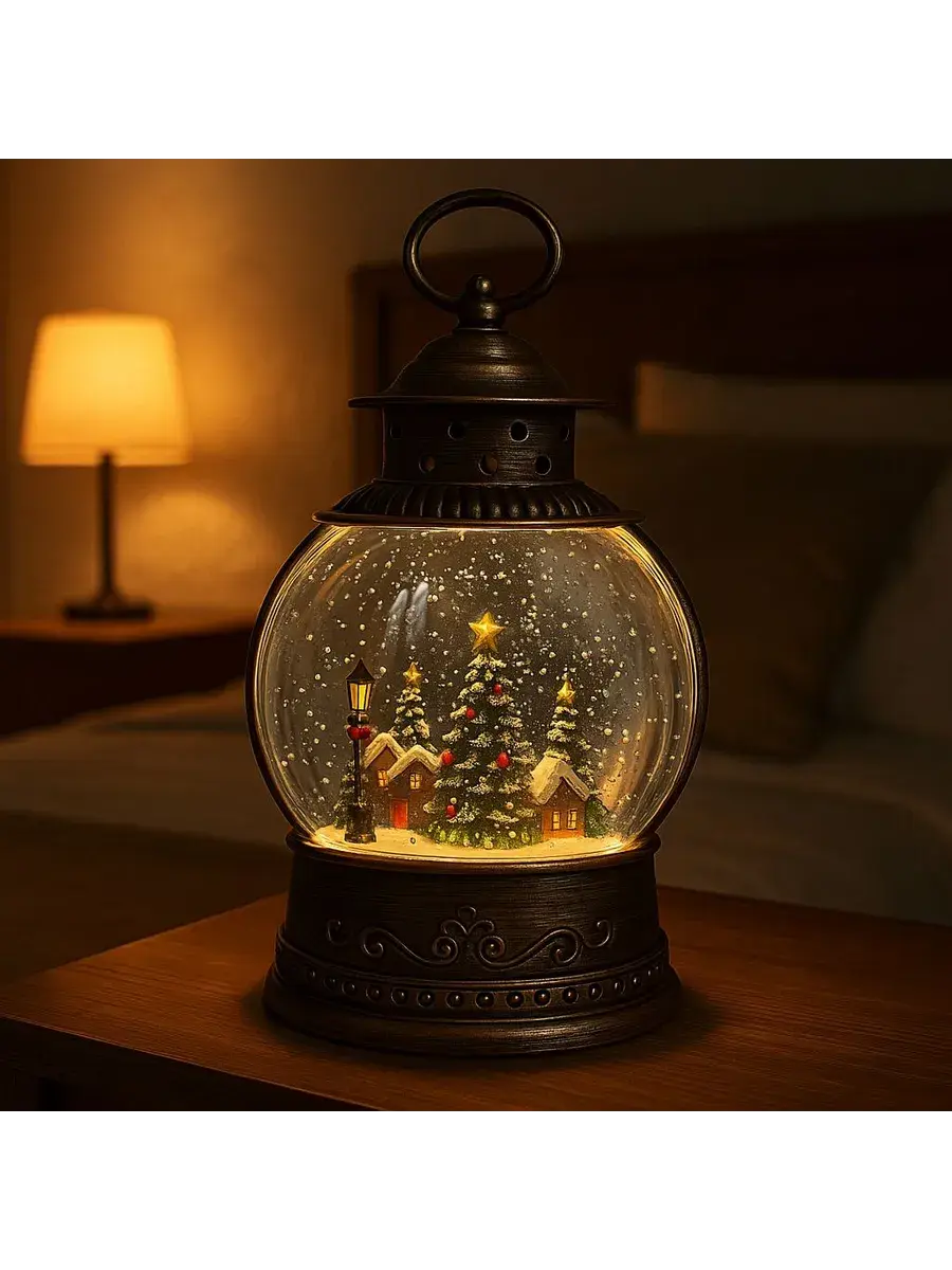 Новогодний музыкальный фонарь с зимним пейзажом создаст волшебную атмосферу в вашем доме. Этот очаровательный фонарь, выполненный в коричневом перламутровом цвете, украсит любой интерьер и наполнит его теплым белым светом. С помощью 8 предустановленных мелодий и звуков вы сможете создать неповторимую праздничную ауру. Фонарь работает в двух режимах, что позволяет вам выбрать наиболее подходящий вариант для любого случая. Он может работать как от кабеля, так и от двух батареек типа AA или AAA, что делает его удобным для использования в любом месте.